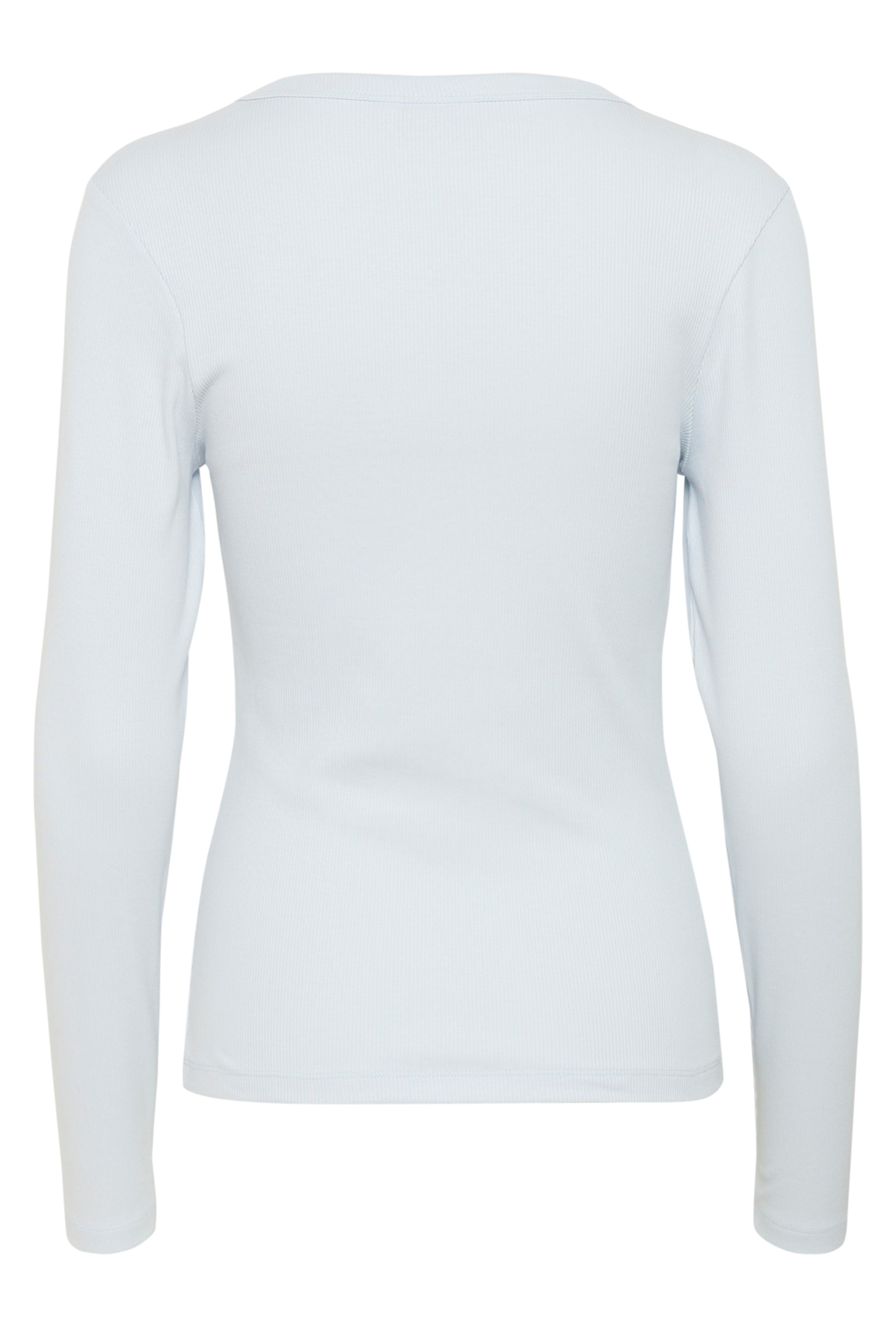Langarmshirt in hellem Blau mit feiner Rippstruktur. Figurbetonte Passform mit Rundhalsausschnitt und dehnbarem Material für angenehmen Tragekomfort. Perfekt solo oder im Lagenlook. Das Model ist 173 cm groß und trägt Größe S.