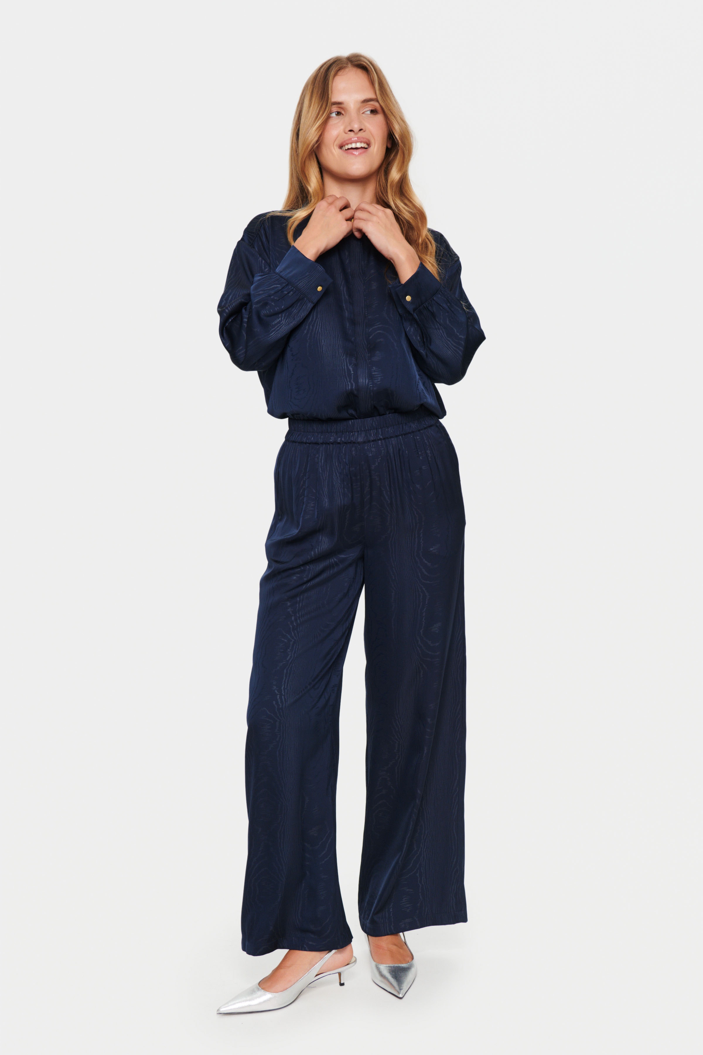 Printed shirt with collar, front buttons, low shoulder seam, and long sleeves with slits and decorative buttons at the bottom, as well as a rounded hem at the bottom. The model is 179 cm tall and wearing size M.